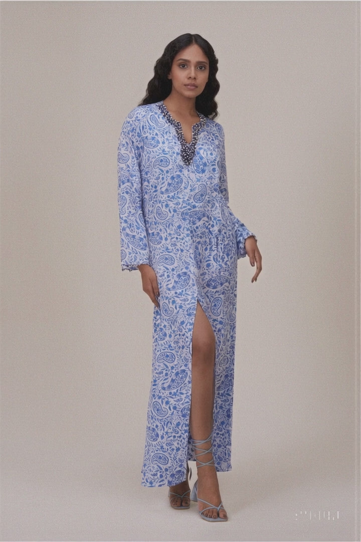 Rival a starlit sky with our stunning Starfall Blouse. Embellished with cascading beads, sequins, and stones, this modern interpretation of traditional embroidery combines artisanal work with a con...